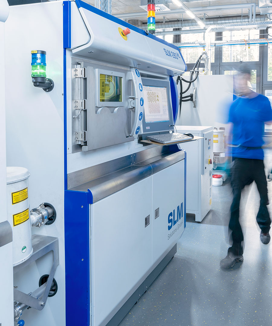 Besonderheit: Der Arbeitsraum der SLM 280 wird unter Vakuum und Schutzgasatmosphäre gesetzt, um die Bauteile ohne Oxidation verarbeiten zu können.